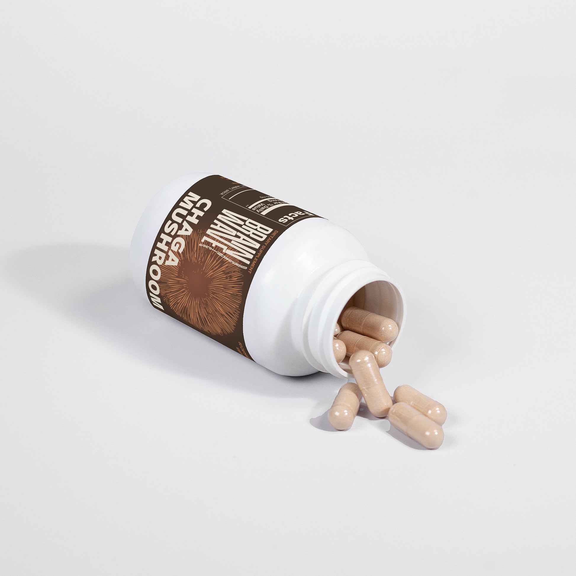 Ingredients: Organic Chaga (Inonotus obliquus) Mushroom Mycelium Powder (Standardized to 40% polysaccharides [400mg]), Organic capsule (pullulan, water), silica.